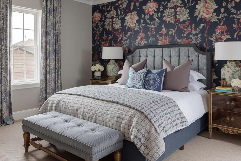 Pour intégrer la chinoiserie chez soi sans surcharge, une technique efficace consiste à jouer avec le pattern drenching. Ce concept, qui implique d’appliquer un même motif décoratif sur plusieurs éléments d’une pièce, permet d’apporter l’exotisme de la chinoiserie — scènes pittoresques, paysages de pagodes, fleurs de cerisier ou de lotus, bambous et motifs symboliques comme les nuages et lanternes — sans saturer l’espace. Plutôt que de couvrir entièrement les murs de chinoiserie, il s’agit de distiller le motif à travers des éléments de mobilier et des accessoires. Par exemple, vous pouvez harmoniser le même motif sur des rideaux imprimés, des coussins de canapé ou de fauteuils, et même des tissus de lit. Cette méthode crée une atmosphère immersive et chargée de caractère, tout en maintenant l’équilibre de l’espace. L’effet est à la fois théâtral et élégant, métamorphosant même les plus petits espaces en véritables œuvres d’art décoratives.