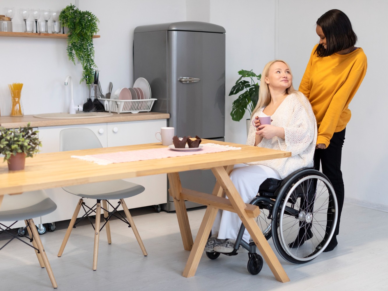 Pour garantir un confort optimal aux personnes à mobilité réduite, il est essentiel d’aménager les principales pièces de vie (cuisine, salle de bain et chambre) selon les normes PMR. En cuisine, une aire de rotation d’au moins 1,50 mètre de diamètre doit être prévue pour permettre les déplacements en fauteuil. Il est recommandé de rapprocher les éléments essentiels (réfrigérateur, évier, four) afin de limiter les déplacements. Le choix d’un sol antidérapant, facile à entretenir, renforce la sécurité au quotidien.